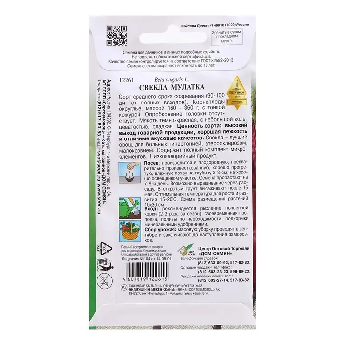 Сорт среднего срока созревания (125-130 дн. от всходов до сбора урожая). Корнеплоды округлые, массой 160 - 360 г, с тонкой кожурой. Опробковение головки отсутствует. Мякоть темно- красная, с небольшой кольцеватостью, сладкая. Ценность сорта: высокий выход товарной продукции, хорошая лежкость и отличные вкусовые качества. Свекла – лучший овощ для больных гипертонией, атеросклерозом, малокровием. Содержит полный комплект микроэлементов. Низкокалорийный продукт. Для свежего потребления, переработки и хранения.Посев: производится в плодородную, предварительно произвесткованную, хорошо прогретую почву на глубину 2-3 см, на хорошо освещенном участке. Возможно выращивание через рассаду. В открытый грунт высаживают после 15 мая. Выращивают без прореживания. Растения размещают по схеме 10х30 см.Уход: рекомендуется рыхление почвенной корки (2-3 раза за сезон) , своевременная прополка, поливы по необходимости, подкормки минеральными удобрениями. Сбор урожая: масовую уборку проводят в сентябре и заканчивают до наступления заморозков.