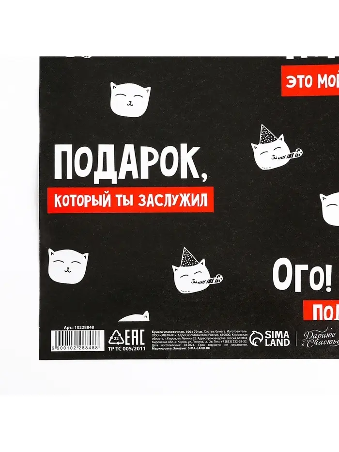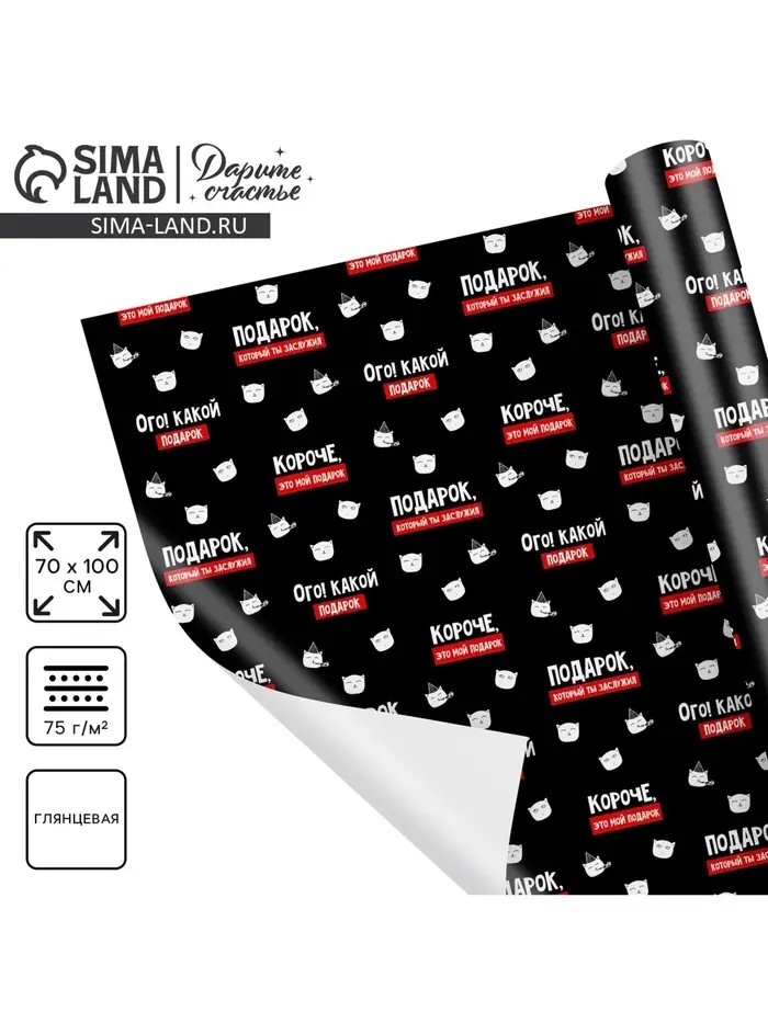 Бумага упаковочная глянцевая «Подарок, который ты заслужил», 1 лист, 70 х 100 см