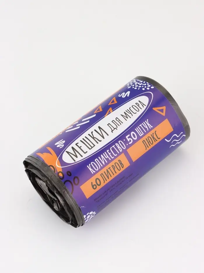 Мешки для мусора в рулоне 60 л, черные, ПНД, толщина 15 мкм, 50 шт