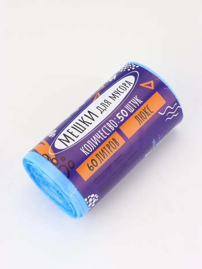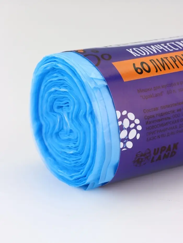 Мешки для мусора в рулоне 60 л, голубые,ПНД, толщина 15 мкм, 50 шт