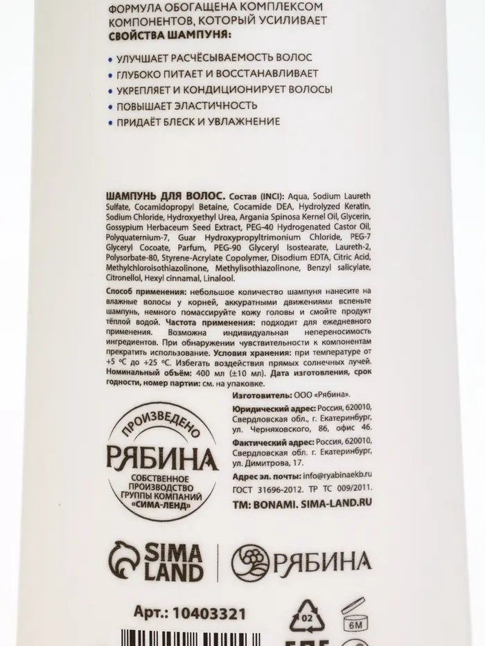 Шампунь для волос «Питание и восстановление», 400 мл, BONAMI