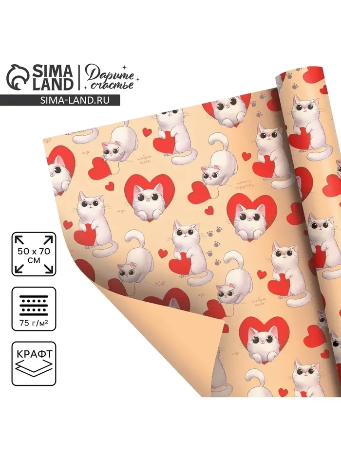 Бумага упаковочная крафтовая «Моему сердечку», 50 х 70 см