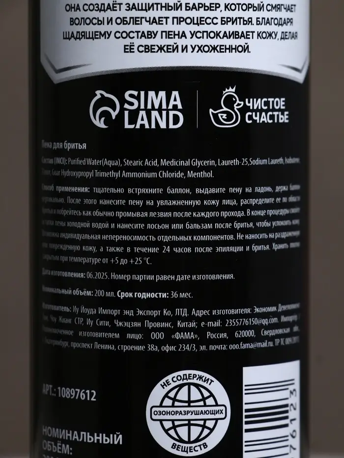 Пена для бритья "100% мужчина", 200 мл