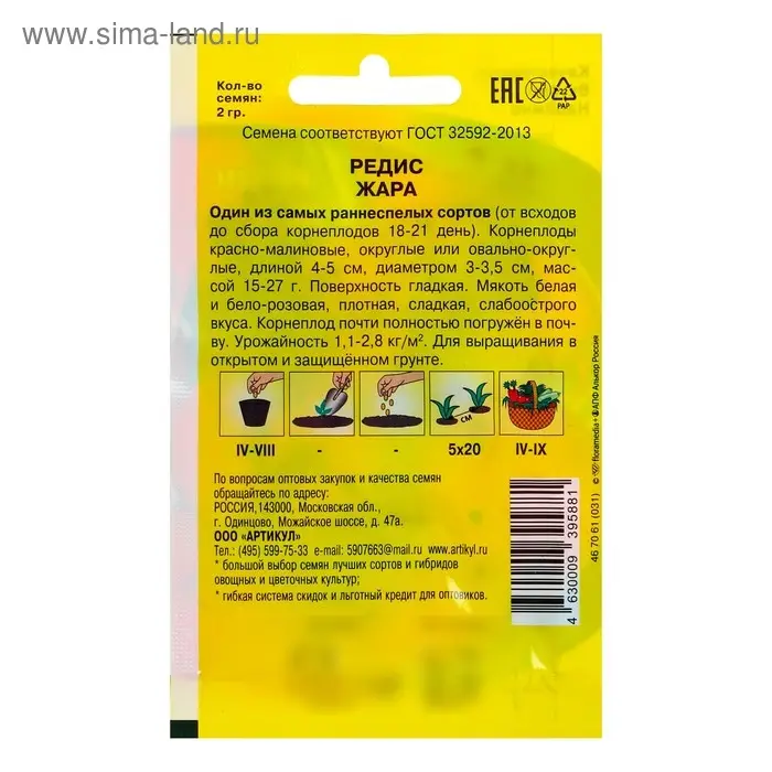 Семена Редис "Жара" раннеспелый, 2 г