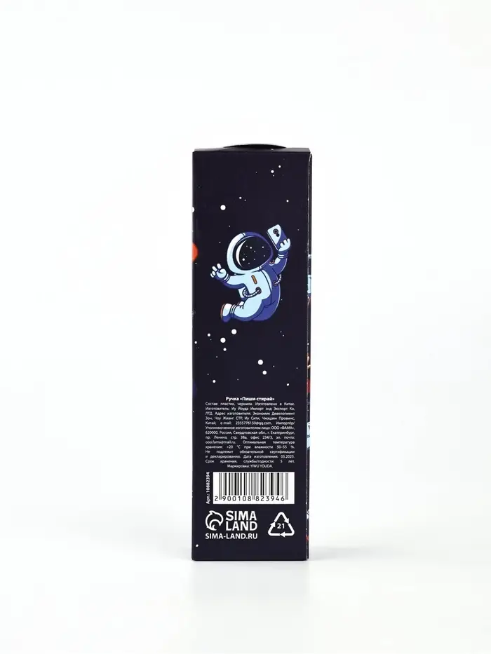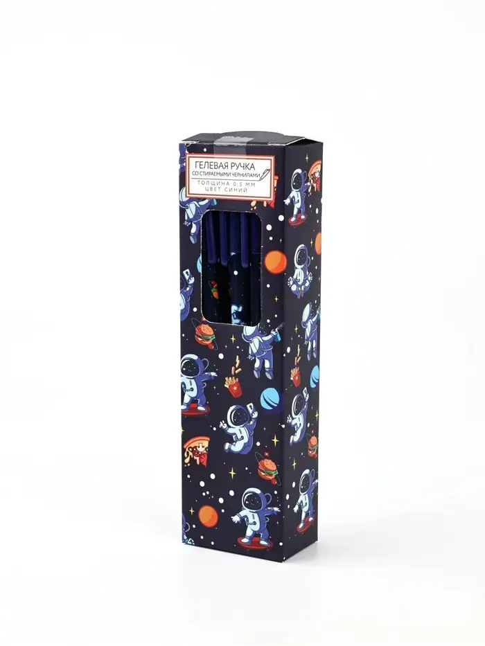 Ручка пластик пиши-стирай с колпачком "Космонавт", синяя паста, гелевая 0,5 мм