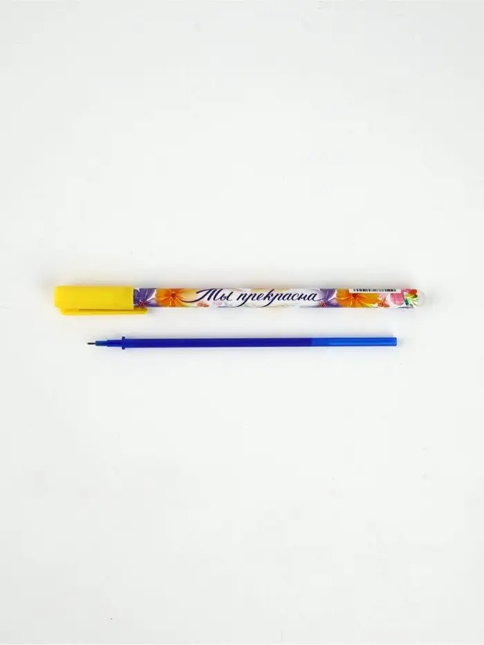 Ручка пластик пиши-стирай с колпачком "С 8 Марта!", синяя паста, гелевая 0,5 мм