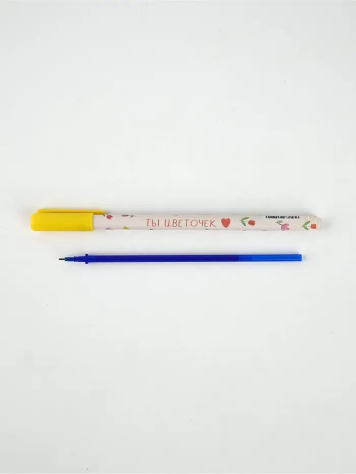 Ручка пластик пиши-стирай с колпачком "Ты-цветочек", синяя паста, гелевая 0,5 мм