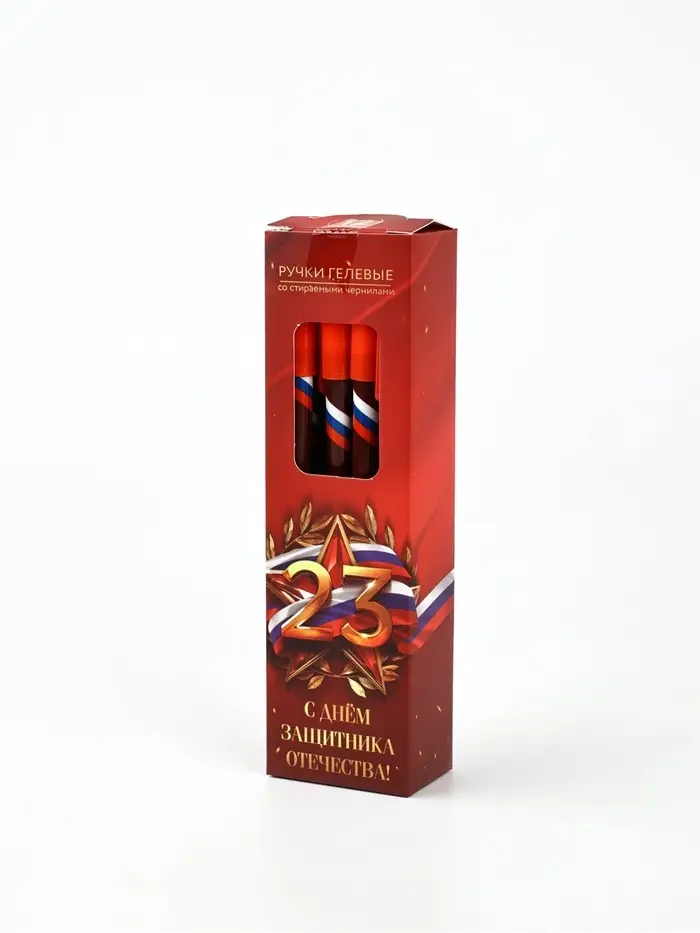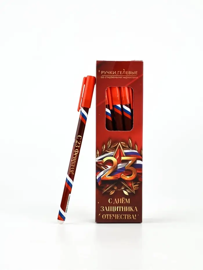 Ручка пластик пиши-стирай с колпачком "С Днём Защитника Отечества", синяя паста, 0,5 мм