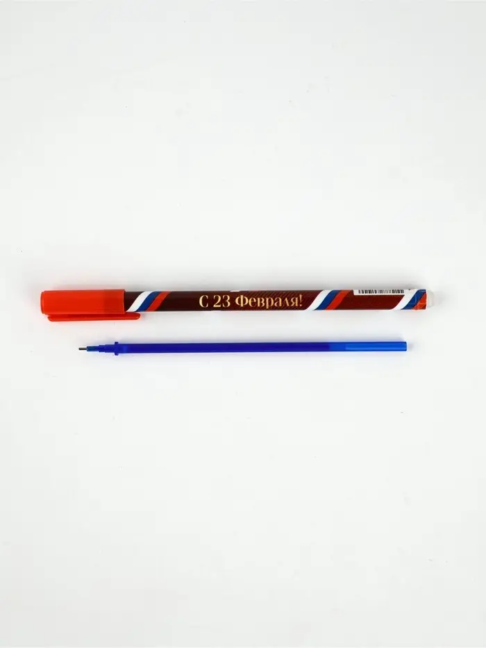 Ручка пластик пиши-стирай с колпачком "С 23 февраля!", синяя паста, гелевая 0,5 мм