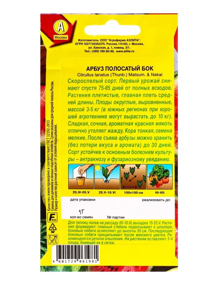 Семена Арбуз Полосатый бок, Ц/П,1 г