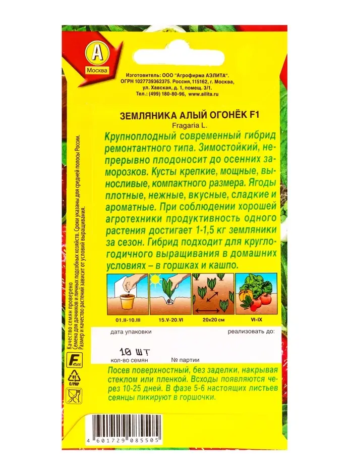 Семена Земляника ремонтантная крупноплая Алый огонек F1, Ц/П,10 шт.
