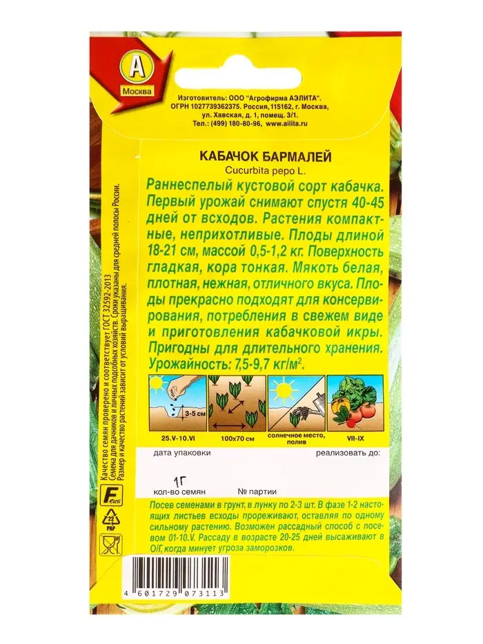 Семена Кабачок цуккини Бармалей, Ц/П,1 г