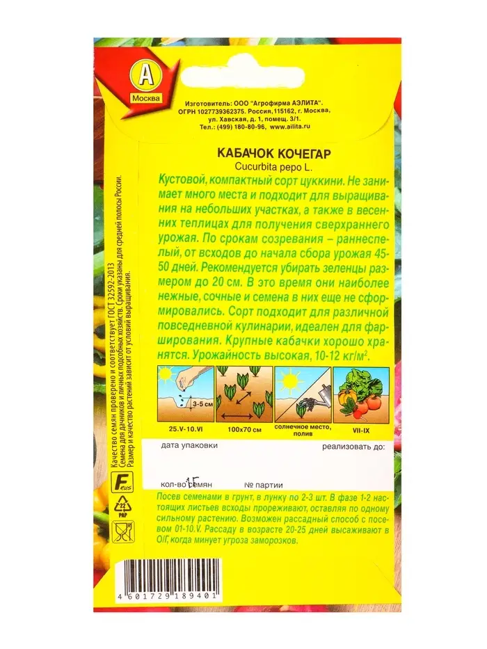 Семена Кабачок цуккини Кочегар, Ц/П,1 г