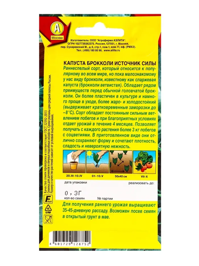 Семена Капуста брокколи Источник силы Р, Ц/П,0,3 г