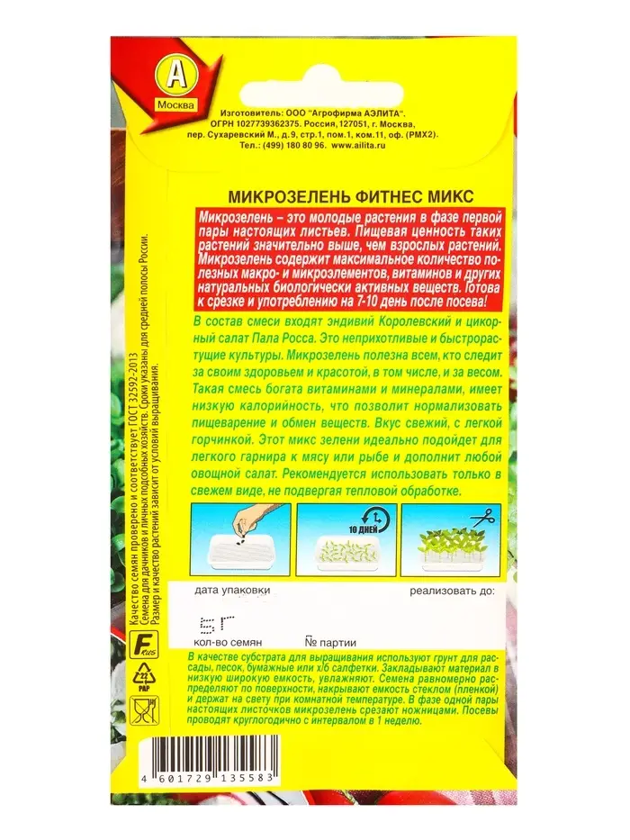 Семена Микрозелень Фитнес микс, Ц/П,5 г