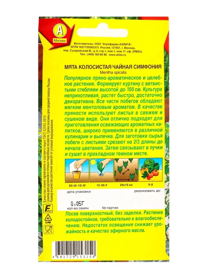 Семена Мята колосистая Чайная симфония, Ц/П,0,05 г