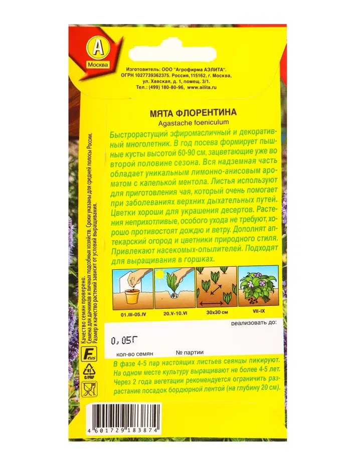 Семена Мята Флорентина, Ц/П,0,05 г