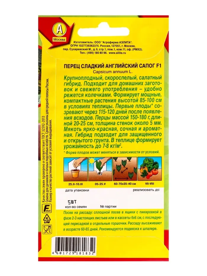 Семена Перец сладкий Английский сапог F1 Самое самое, Ц/П,5 шт.