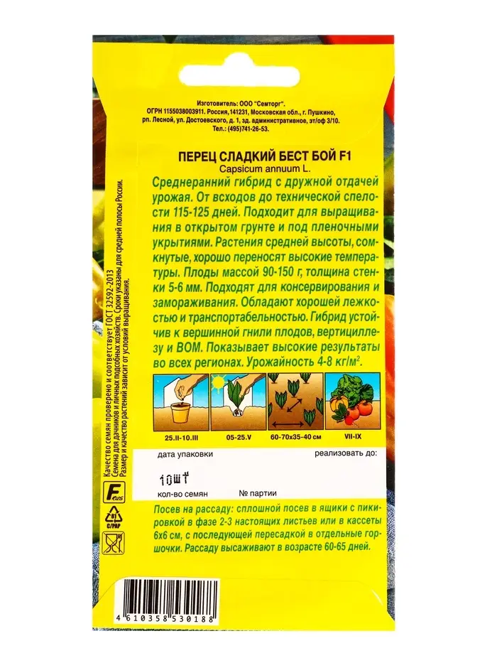 Семена Перец сладкий Бест Бой F1 Семторг, Ц/П СТ,10 шт.