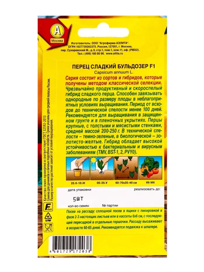 Семена Перец сладкий Бульдозер F1 Профи-Аэлита, Ц/П,5 шт.