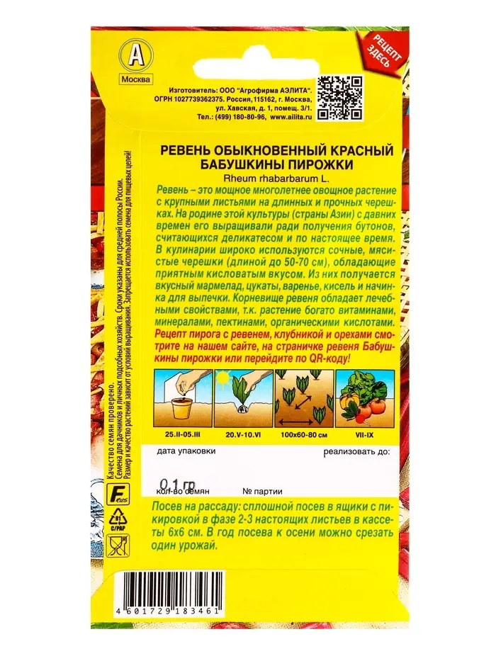 Семена Ревень обыкновенный красный Бабушкины пирожки Блюда стран мира, Ц/П,0,1 г