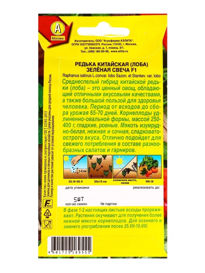 Семена Редька китайская Зелёная свеча F1, Ц/П,5 шт.
