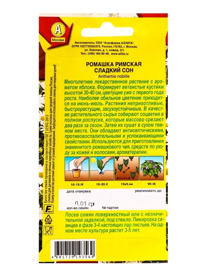 Семена Ромашка римская Сладкий сон Лечебный огород, Ц/П,0,01 г