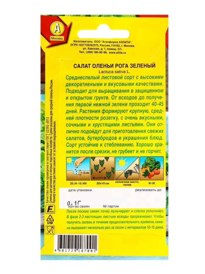 Семена Салат Оленьи рога зеленый, Ц/П,0,1 г