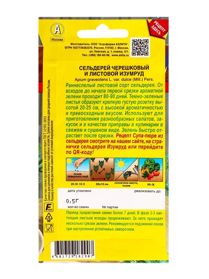 Семена С.ьдерей листовой Изумруд Блюда стран мира, Ц/П,0,5 г
