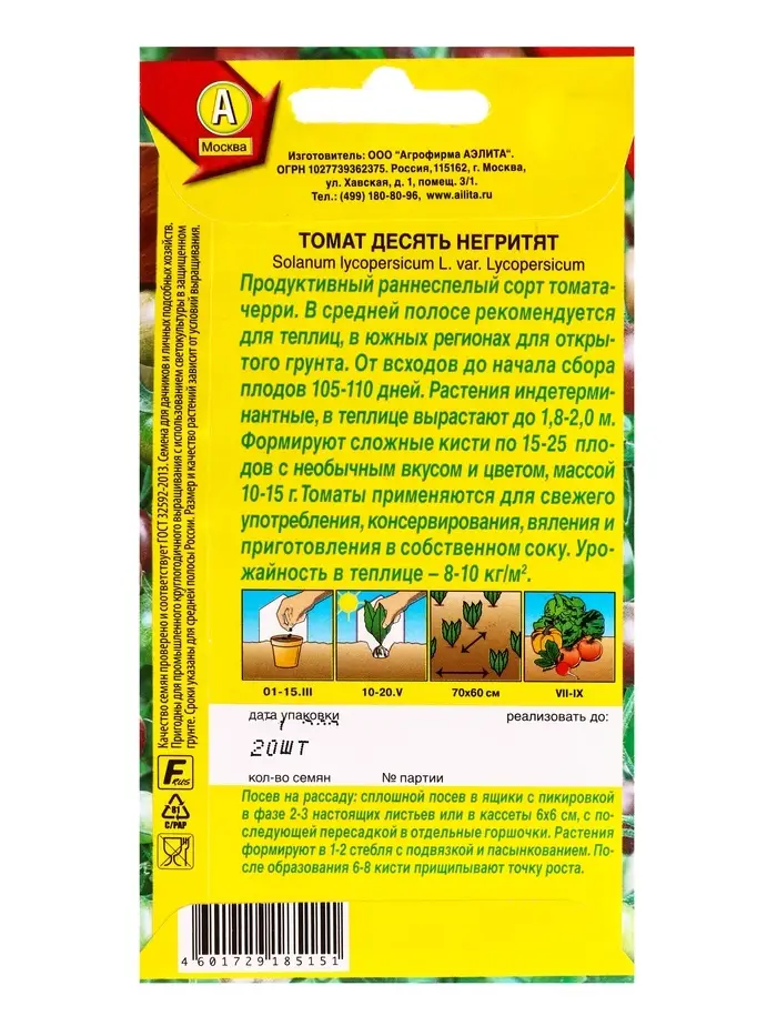 Семена Томат Десять негритят, Ц/П,20 шт.