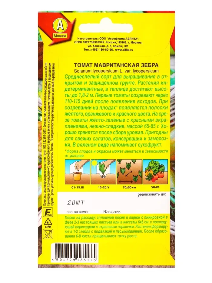 Семена Томат Мавританская зебра Ср, Ц/П,20 шт.