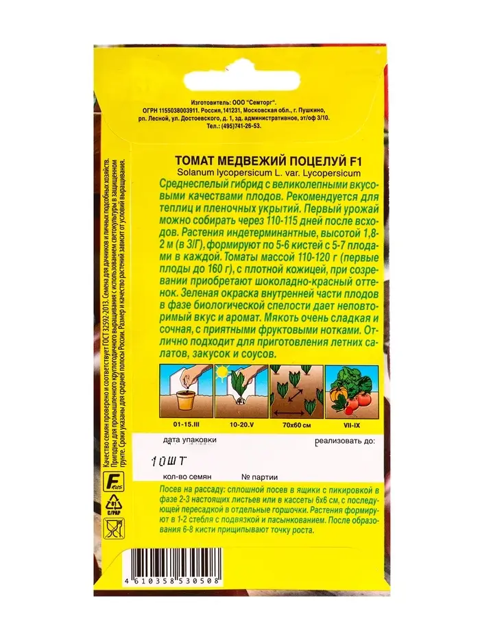 Семена Томат Медвежий поцелуй F1 Ср Семторг, Ц/П СТ,10 шт.