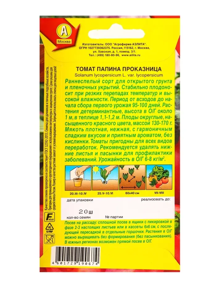 Семена Томат Папина проказница Р, Ц/П,20 шт.