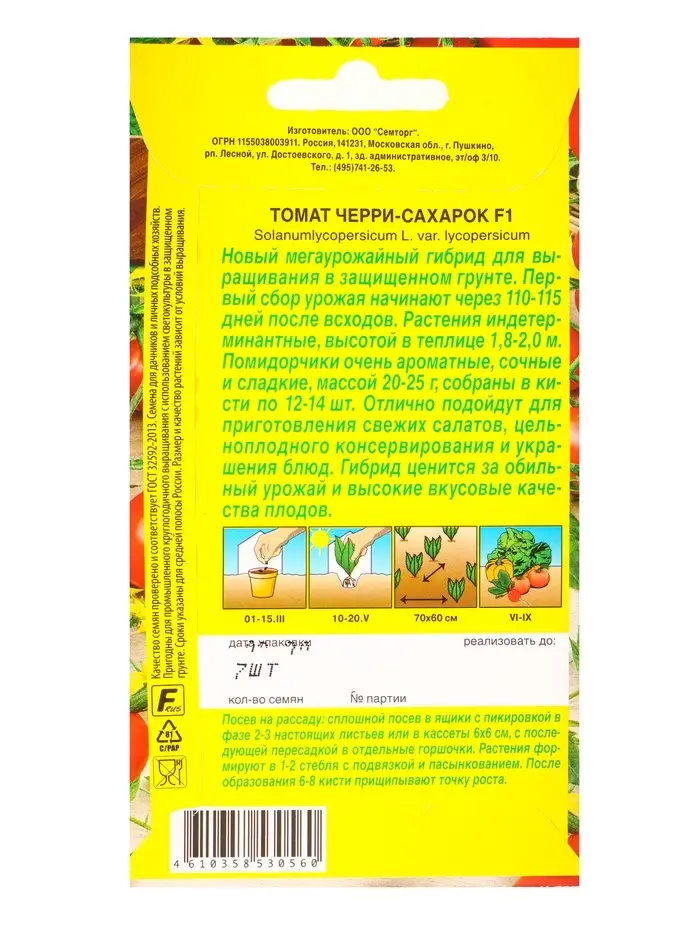 Семена Томат Черри-сахарок F1 Семторг, Ц/П СТ,7 шт.