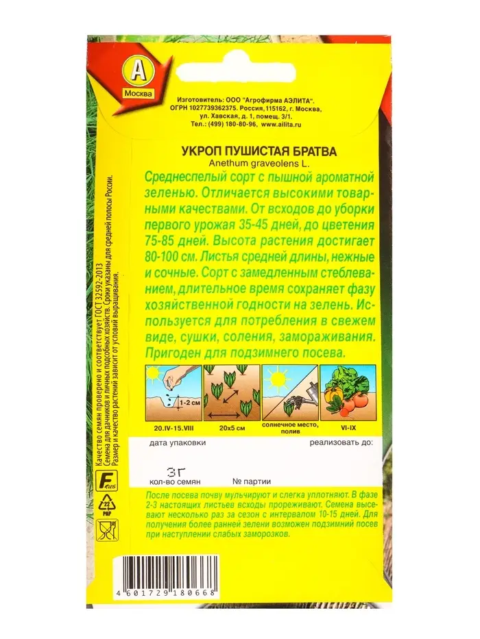 Семена Укроп Пушистая братва Популярные пряности, Ц/П,3 г