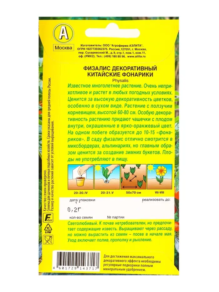 Семена цветов Физалис Китайские фонарики Мн, Ц/П,0,2 г