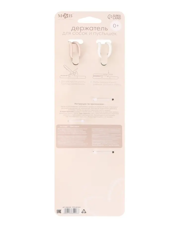 Держатель для соски пустышки, 2 шт, текстиль и силикон, Mum&Baby