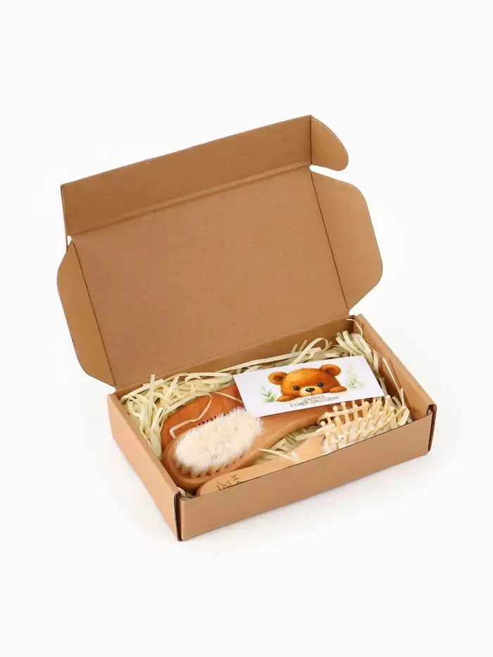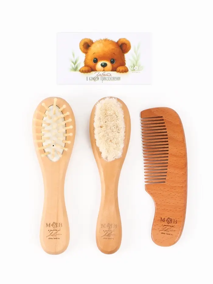 Набор деревянных расчесок детских с натуральной щетиной, 3 шт в коробке, M&B