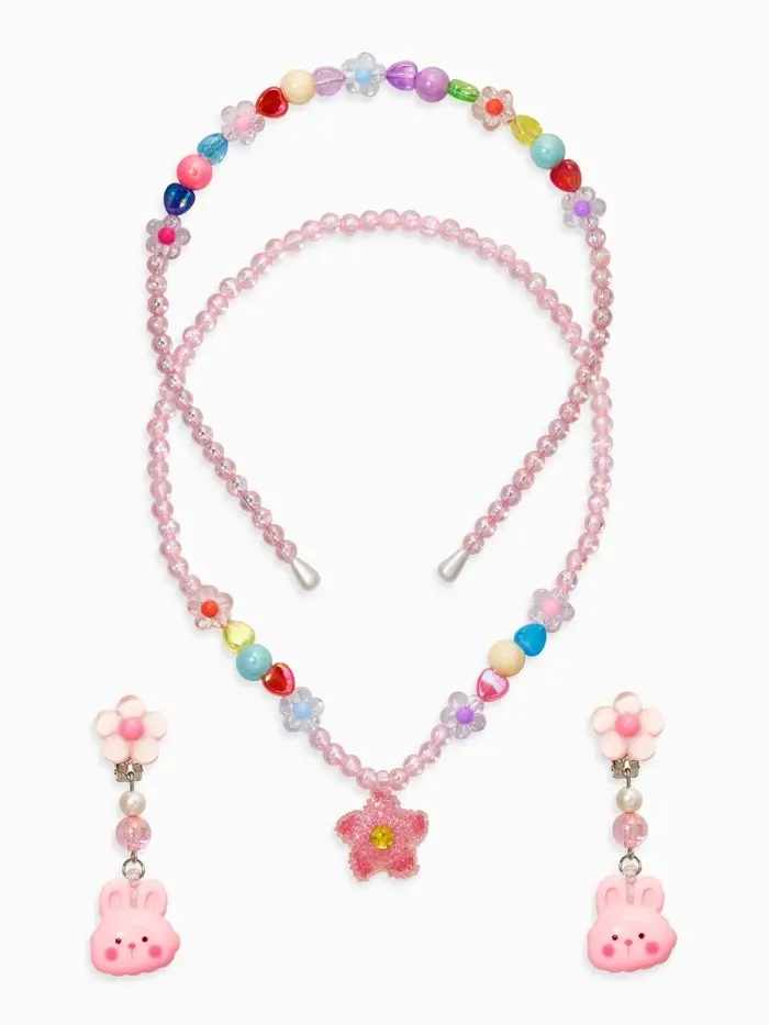 Комплект детский «Выбражулька» 3 предмета, клипсы, бусы, ободок, крлики, цветной