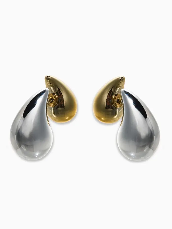 Серьги "Капли Бо" двойные, цвет золотисто-серебристый