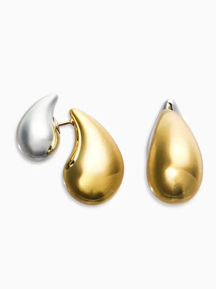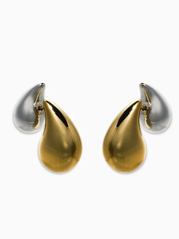 Серьги "Капли Бо" двойные, цвет серебристо-золотой