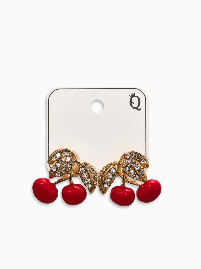 Серьги со стразами "Вишня", цвет бело-красный в золоте