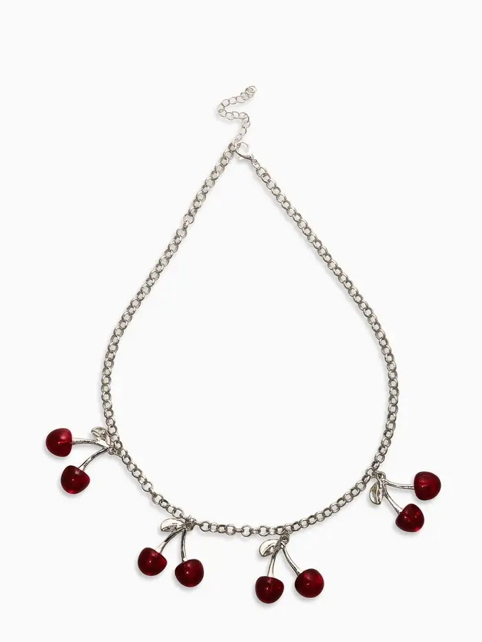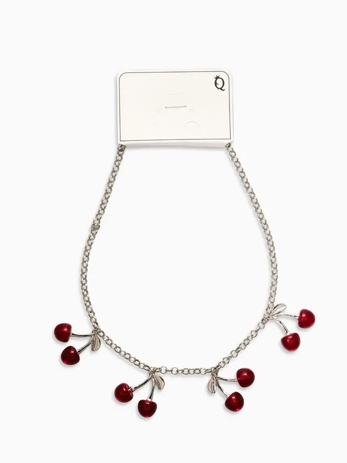 Цепь с подвесками "Вишня", 40+удл, цвет красный в серебре