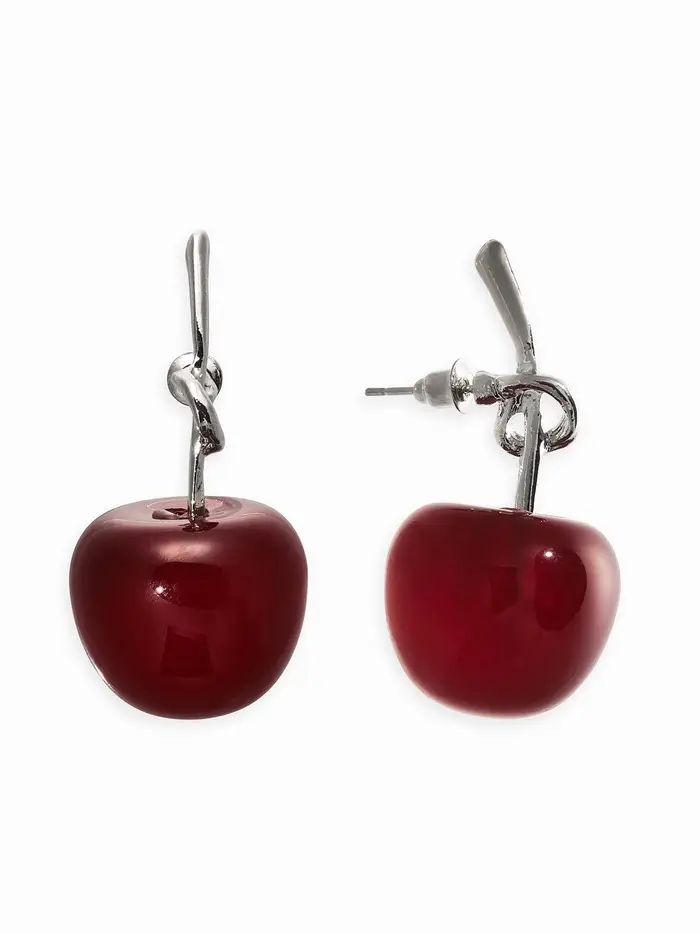 Серьги "Вишня" узел, цвет бордовый в серебре