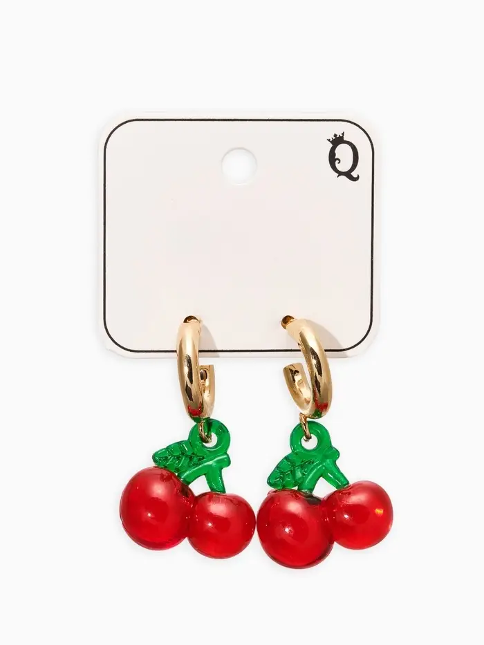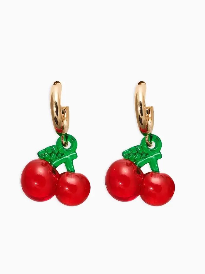Серьги-кольца "Вишенки" легкие, цветные в золоте