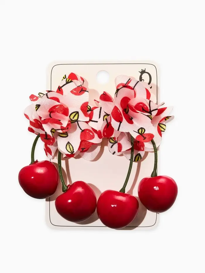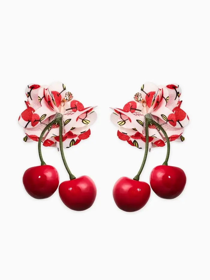 Серьги "Вишня с цветами" текстиль, цветные в золоте