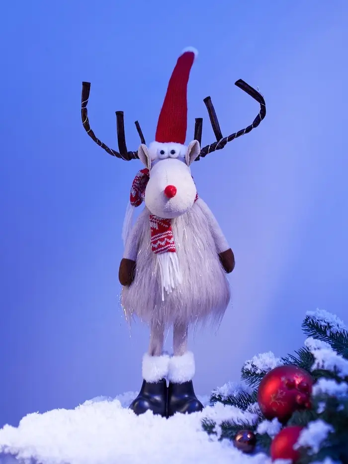 Фигура текстиль «Новогодний лосик» 58 см, 10 LED, от батареек CR2032×1, свечение тёплое белое