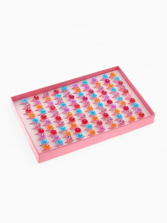 Кольцо Выбражулька «Цветочки», блеск, безразмерное, фасовка 100 шт., МИКС