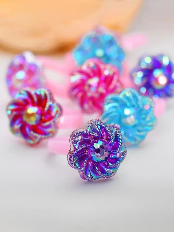 Нежное кольцо с цветочным декором и легким блеском станет ярким акцентом в образе юной модницы. Изготовленное из качественного пластика, оно отличается лёгкостью и комфортом при ношении, а безразмерный дизайн обеспечивает идеальную посадку на любой палец.