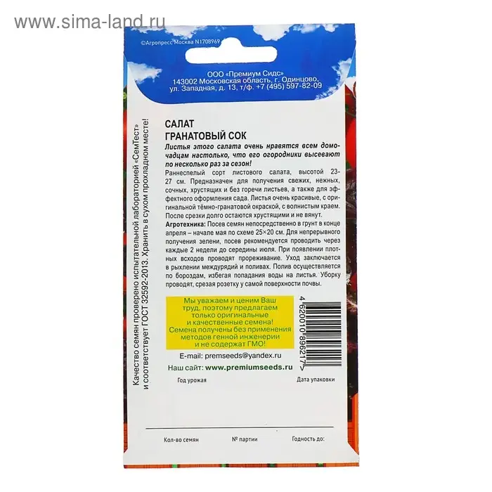 Семена Салат "Бутерброд" листовой, 0,5 г